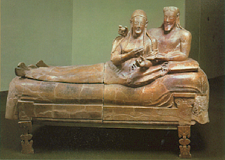 Much of our knowledge of the pre-Roman Etruscan civilization comes from their tombs. Music, dancing, feasting: All were featured in their funerary art. The famous Sarcophagus of the Spouses, for example, shows a couple sharing a banqueting couch.